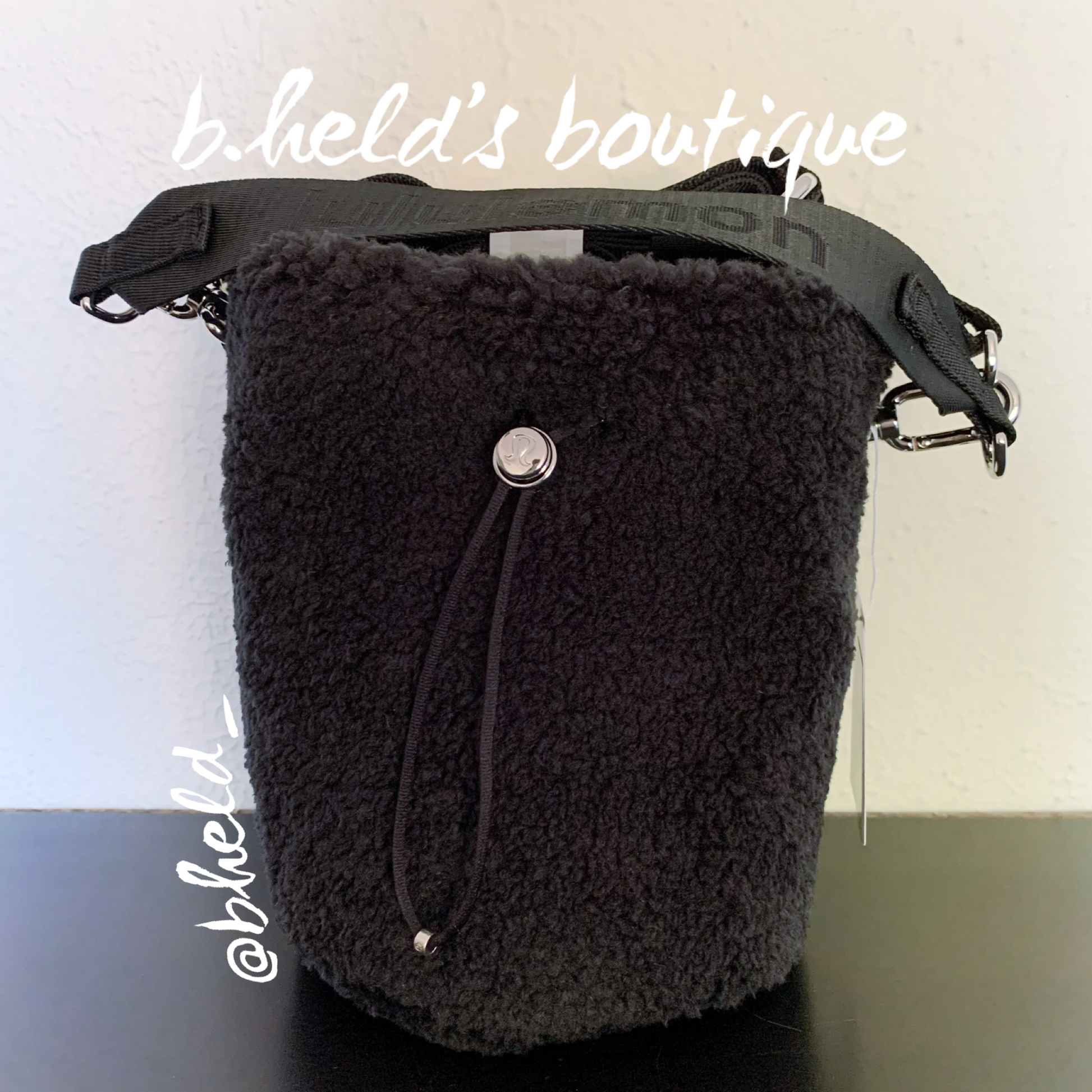 lululemon Crossbody Bucket Bag *Fleece 2.5 L in Black (BLK). Features a removable handle & strap so you can carry it by hand, over the shoulder, or crossbody.