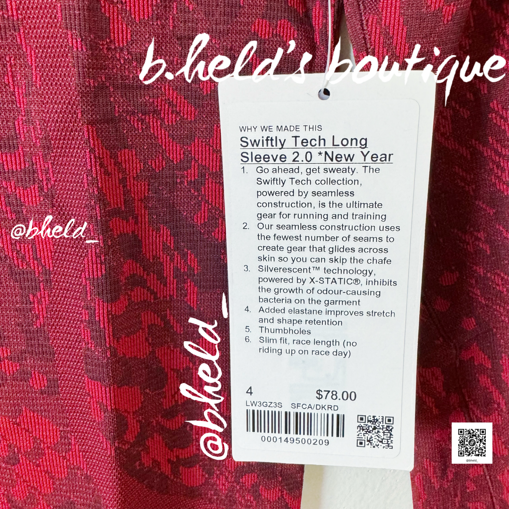 lululemon Lunar New Year Swiftly Tech Long Sleeve Shirt 2.0 *Race Length in Surface Shift Cassis/Dark Red, Size 4