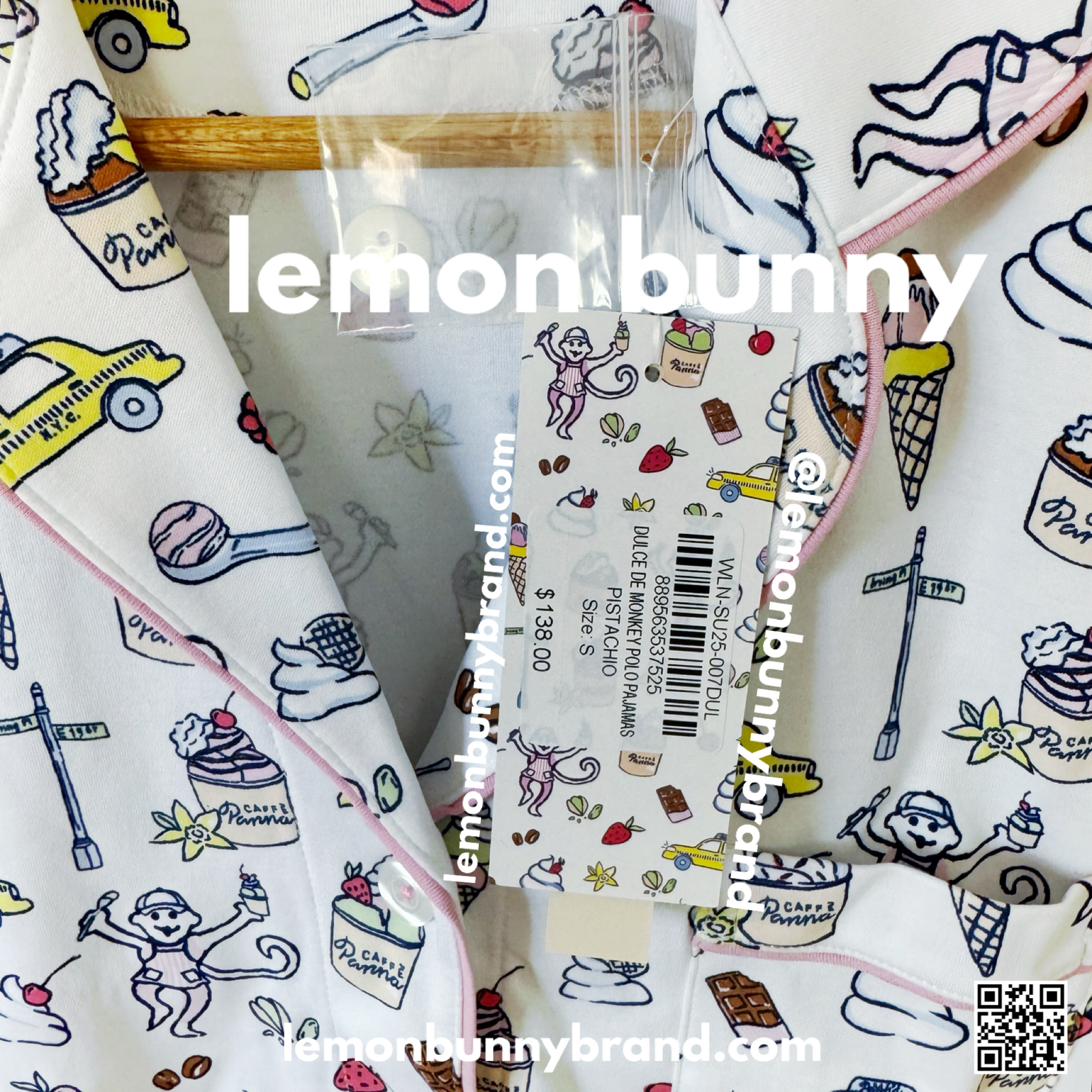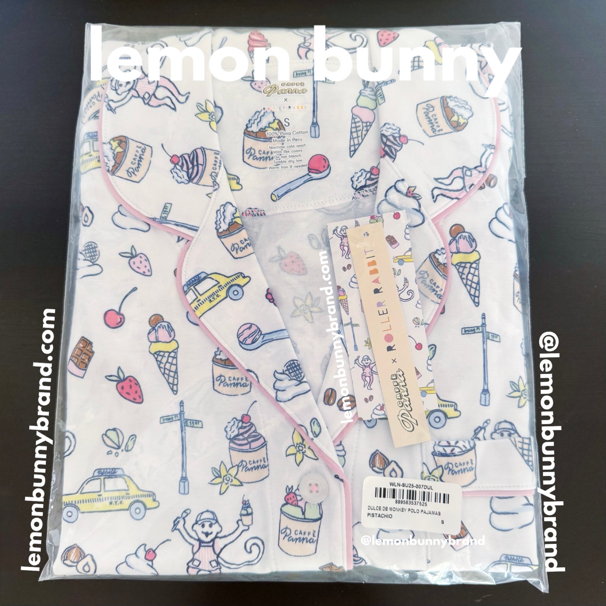 Roller Rabbit x Caffè Panna Dulce De Monkey Polo Pajamas in Pistachio, Size S (Version 1)