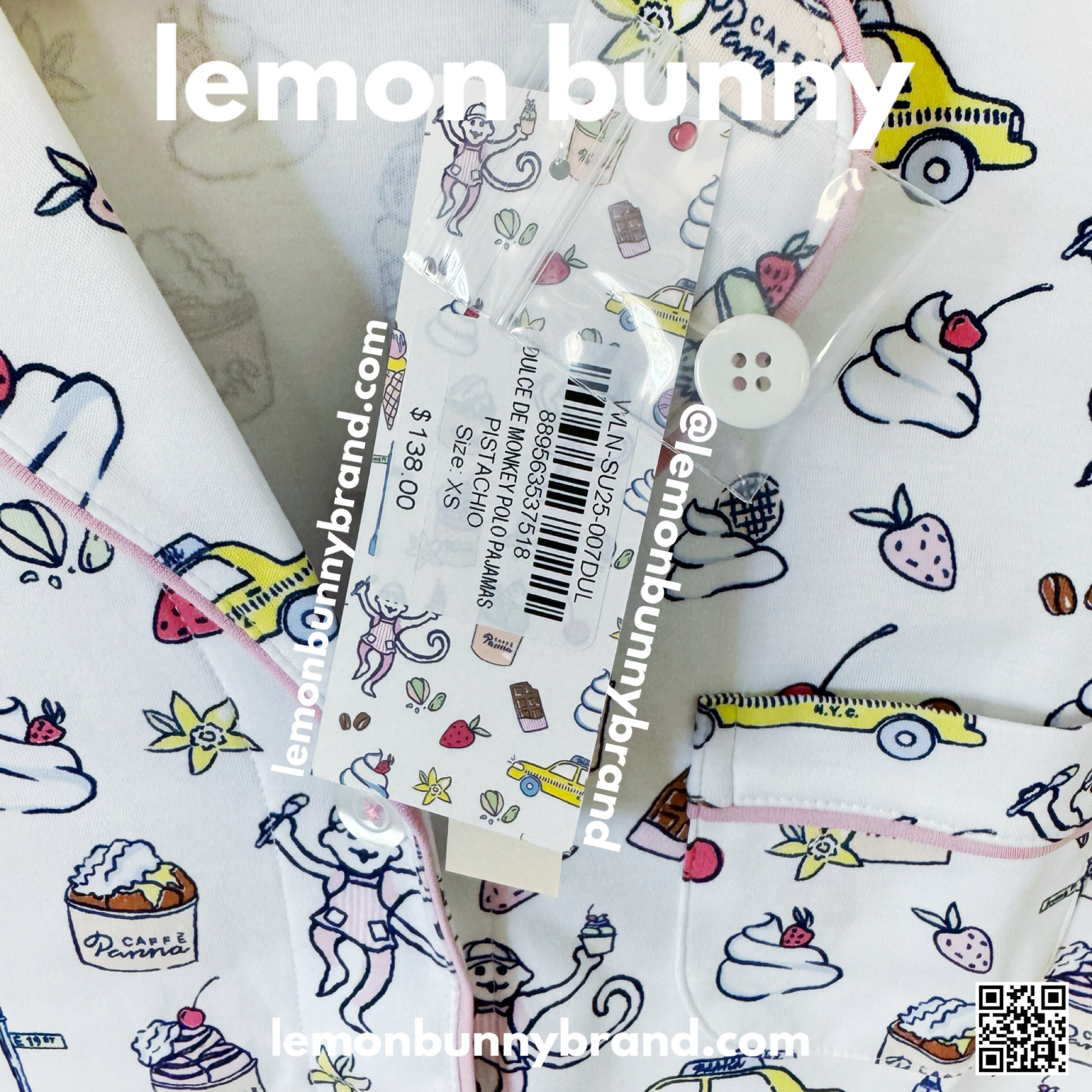 Roller Rabbit x Caffè Panna Dulce De Monkey Polo Pajamas in Pistachio, Size XS