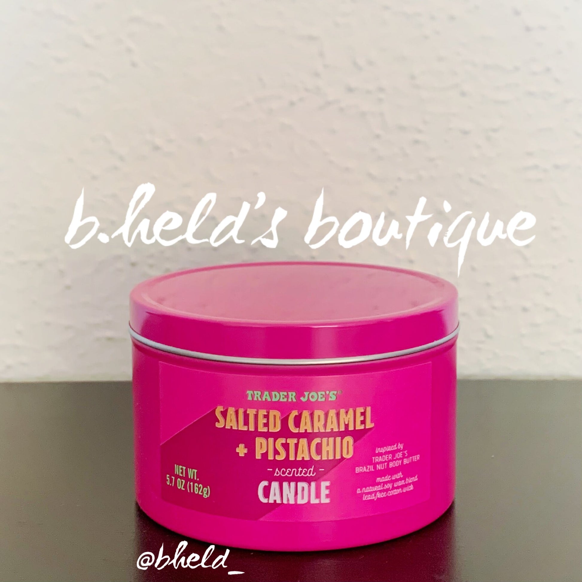 • 1 Trader Joe’s Salted Caramel & Pistachio Scented Candle (5.7 oz)